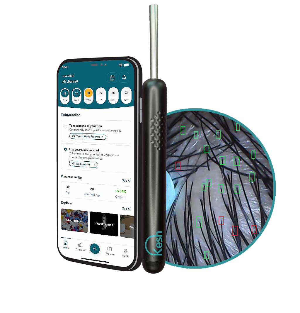 Go one level deeper into tracking your hair growth. Take macro hi-res photos of your scalp using our proprietary tricho device that provides consistent lighting to see and get insights on micro-level developments that are difficult to perceive with your naked eyes. Accelerate the feedback loop on the efficacy of your treatments by identifying bald patches early.