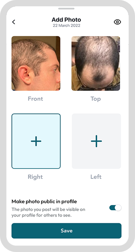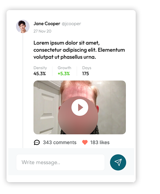 Share with and seek support from the community. Reach out to other hair loss participants who have seen success with their treatment approach for themselves and get inspired by their stories.